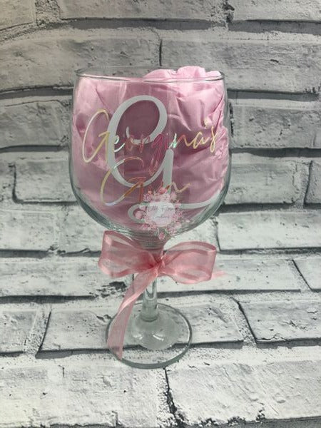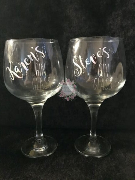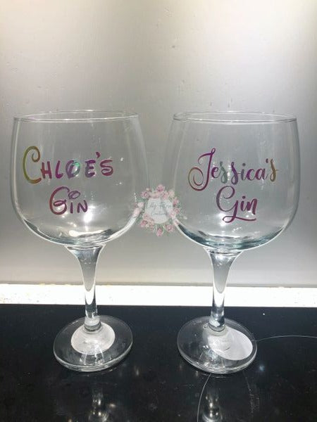 Amazing Gin glasses, fully personalised with any name and any colour font.